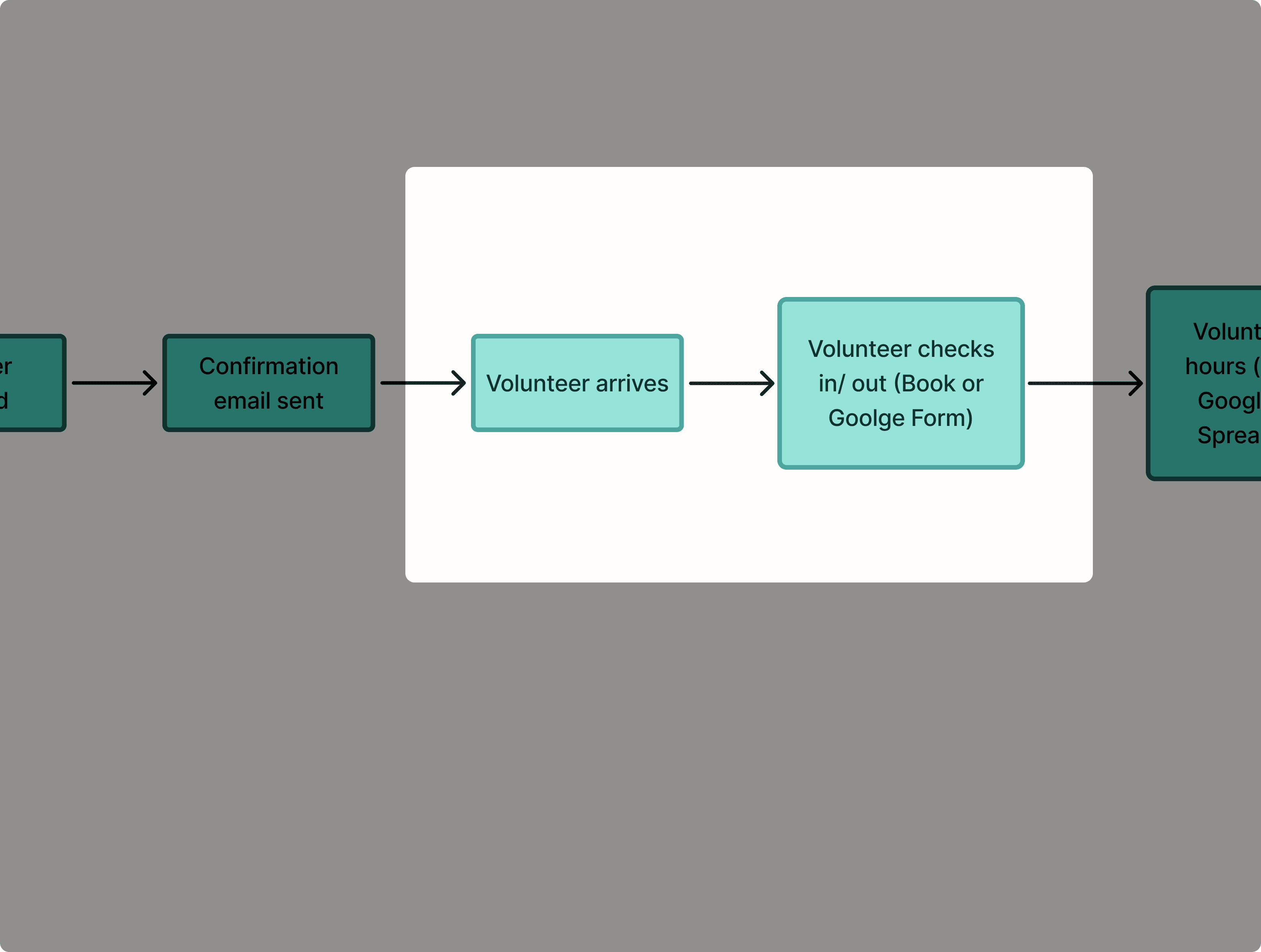 I collaborated with the clients and my PM, tech lead to craft the end-to-end workflow diagram. We seek to create a system that ensures smooth coordination between staff and volunteers.