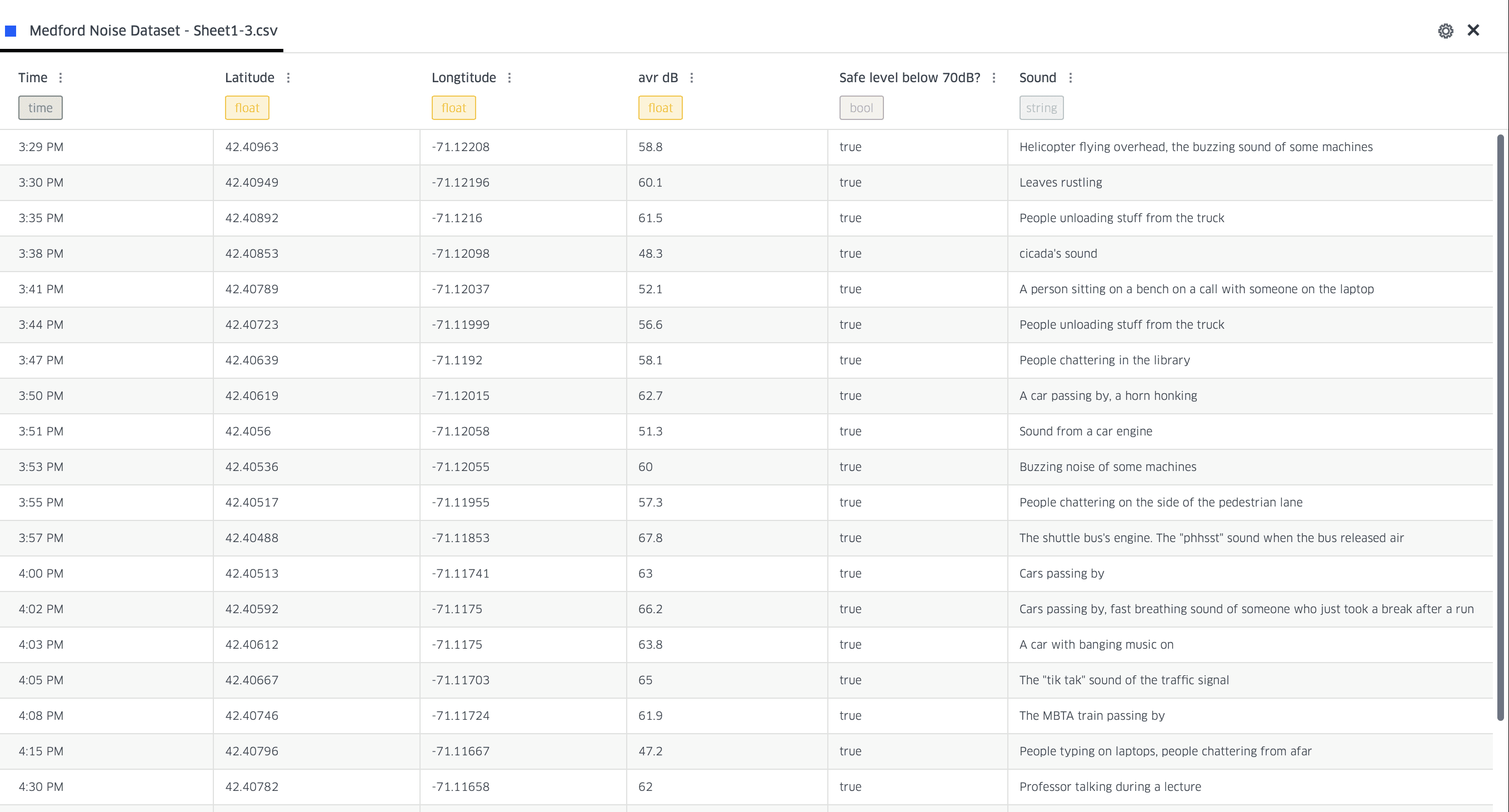 I created the dataset using Google Sheets and converted it into a CSV format for analysis. Throughout a typical day, I recorded the ambient sounds around me using an external sound recorder and measured their intensity with a decibel meter. The collected data was then imported into Kepler.gl—an open-source tool for geospatial analysis of large-scale datasets. There, the data was transformed and visualized to align with my artistic vision, blending the auditory and spatial dimensions into a cohesive narrative.