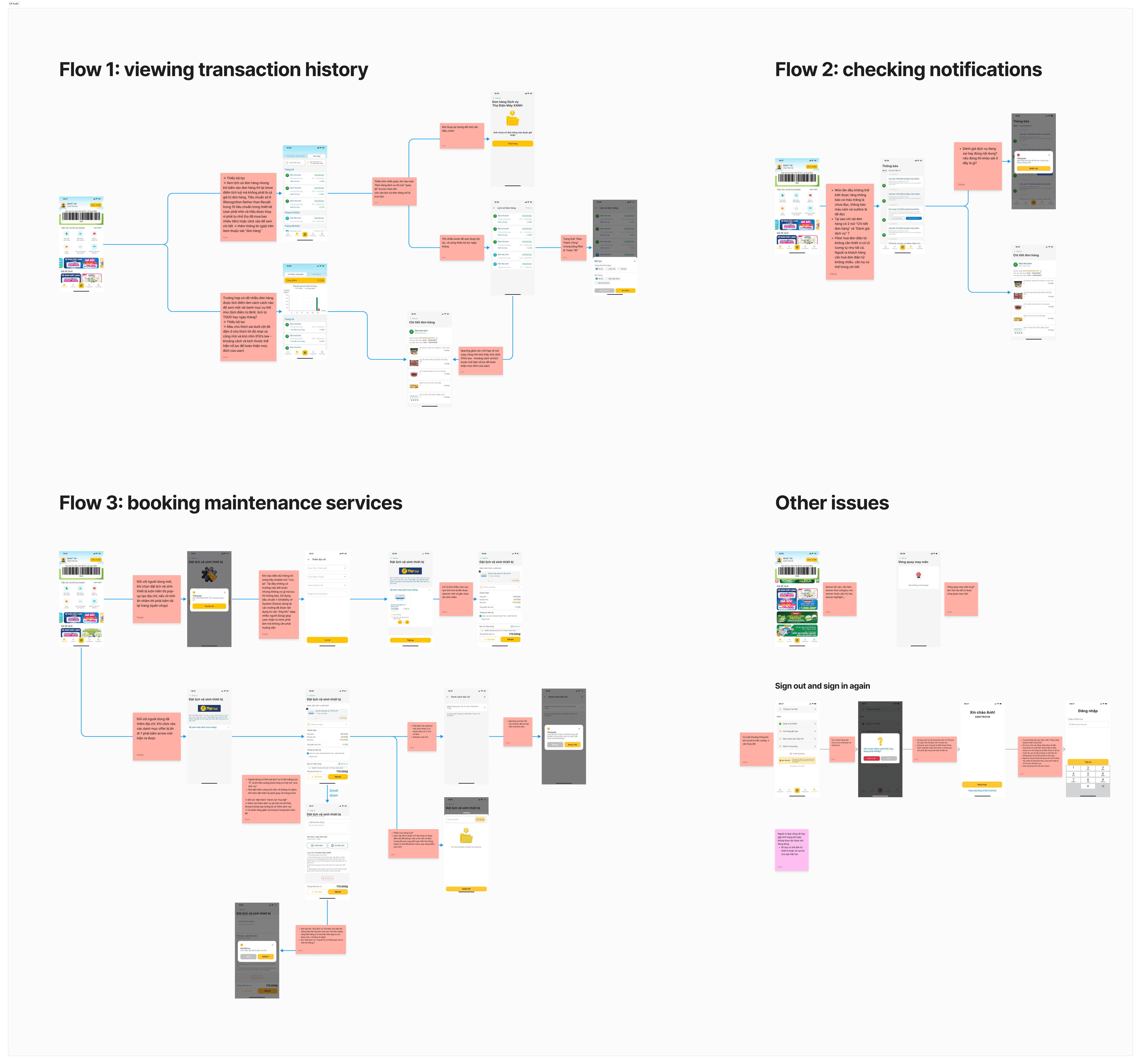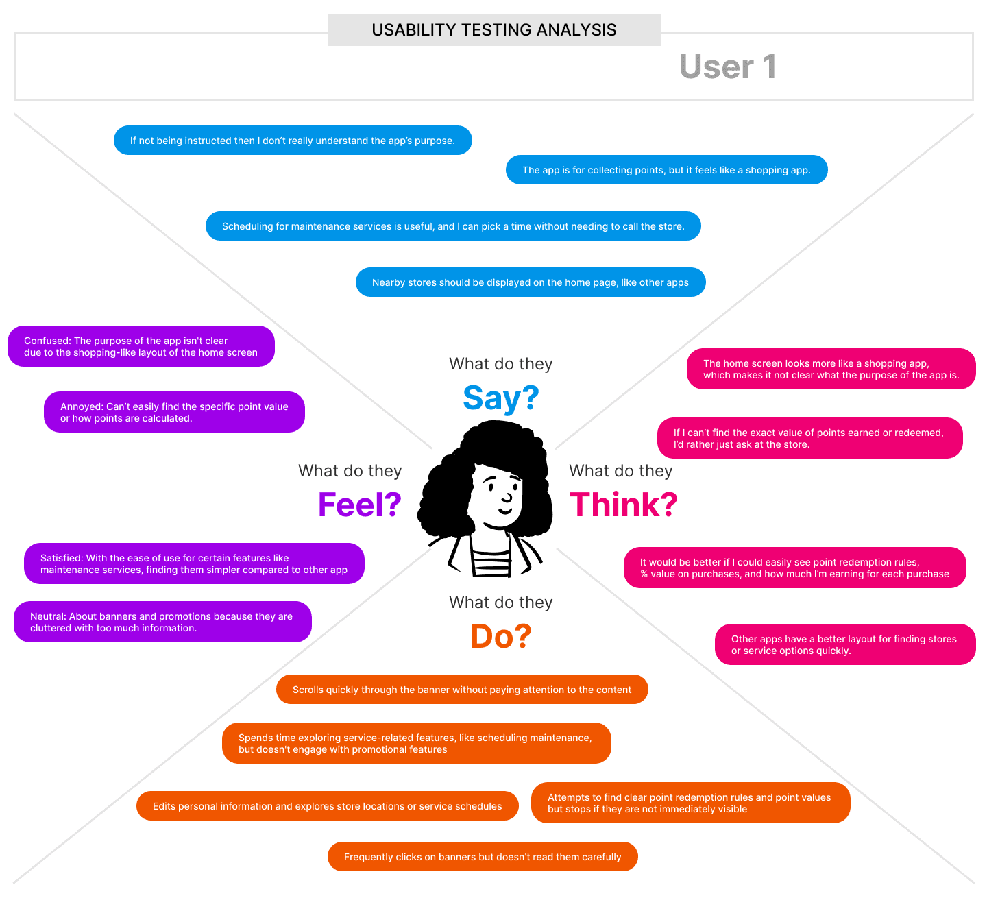 Next, we conducted tests with 5 first-time and infrequent users to better understand their behaviors and emotions. We then organized the insights into empathy maps to gain a comprehensive view of the pain points users are experiencing.