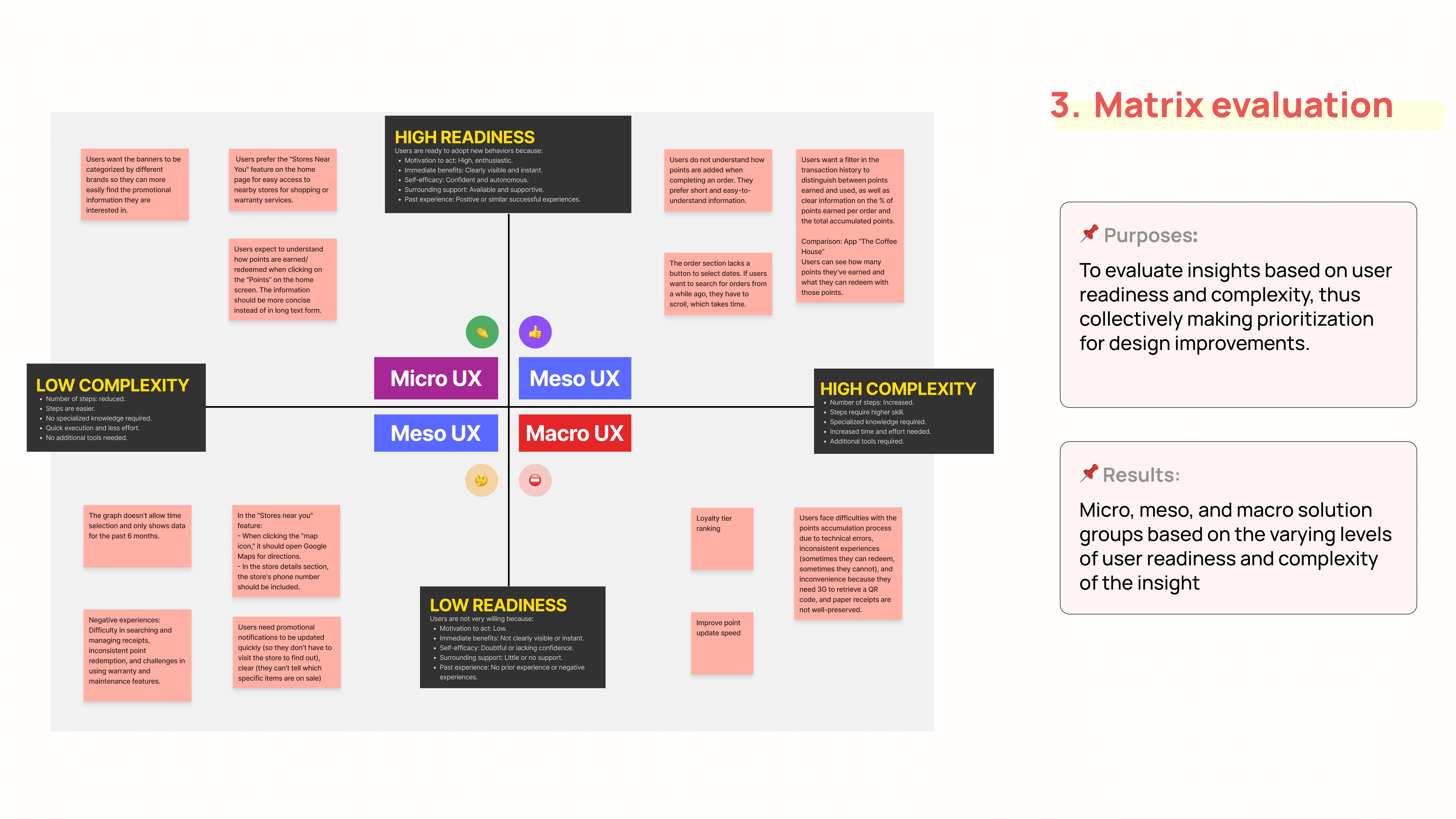 Drawing from the raw feedback gathered during previous internal and external research, I led the team to carry out several exercises to synthesize the data, identify key insights, and convert them into valuable ideas to guide our next design process. Throughout the process, I also sought feedback from my design mentors to make sure we are on the right track.
