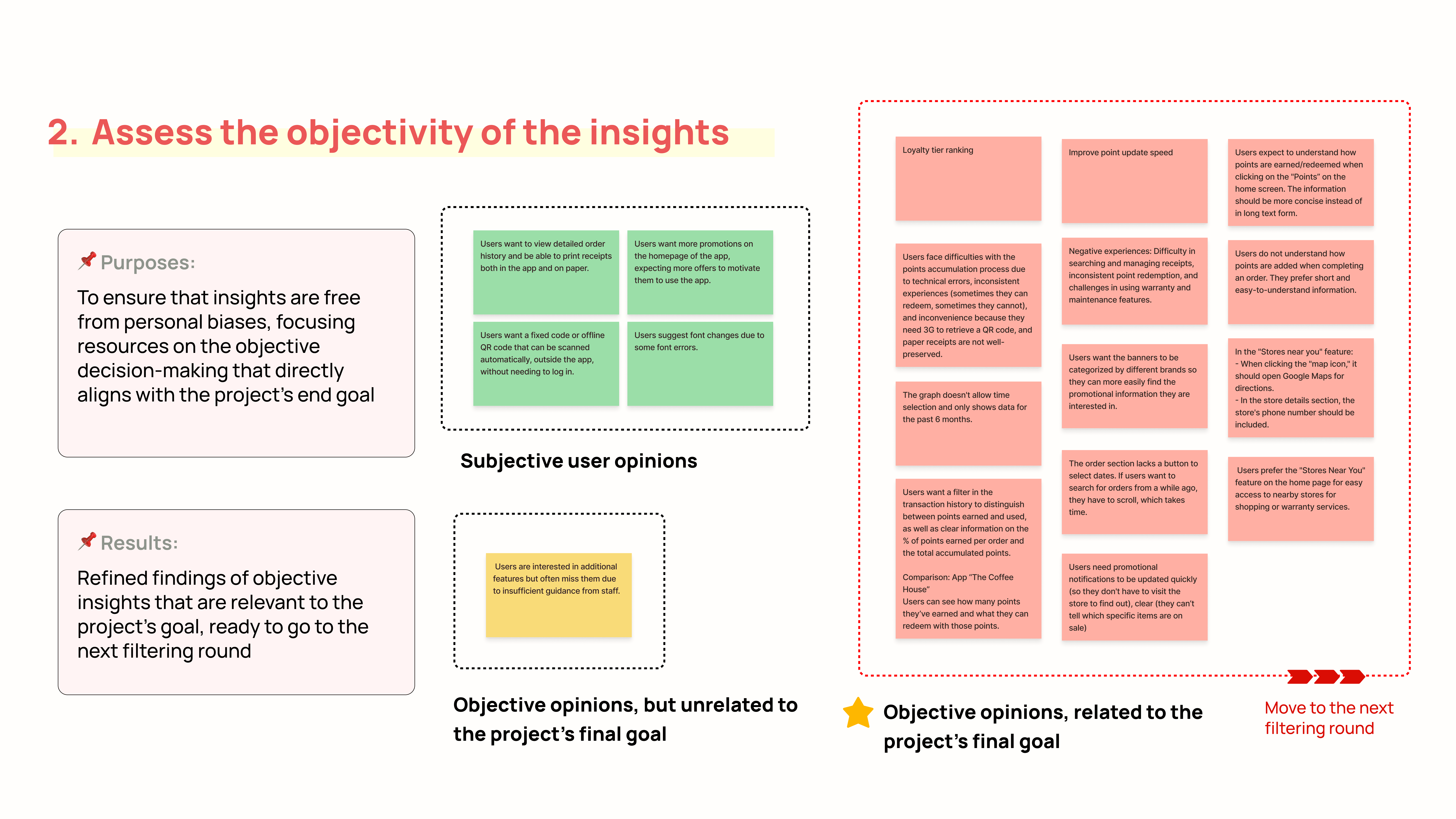 Start-to-end: To validate the assumption from previous research that users lack motivation to use the app because it is not easy to check accumulated points from previous purchases, and they don't understand how to use points → leading to frustration and a lack of trust in the system.
