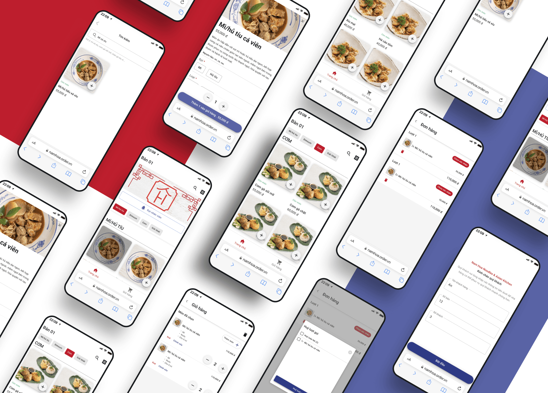 Nam Hoa Noodles & Asian Kitchen is a small Vietnam-based restaurant known for its Asian cuisine, particularly its specialized noodle dishes. In July 2024, I worked with the clients to design their first-ever QR code mobile ordering platform aimed at enhancing the customers' dine-in experience and improving kitchen efficiency. I collaborated closely with a software engineer through weekly sprints to ensure that effective design handoffs were delivered within a tight 2-month timeline (with just 3 weeks for design).